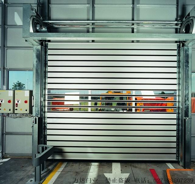 硬质路南快速门具有可靠性、实用性、耐久性、易操作性以及低 廉的维修费用和 低噪 音等性能。在工业应用中,每年正常无故障动作可达15万次以上。门板条为双层结构,可以抵抗强风和暴风雨及大雪的侵袭。根据需要,还可以将隔热铝制板条和透明的板条组合安装起来。板条在卷起时相互无接触,这样可以保持板条常年无变形、无磨损。另外板条之间也没有直接连接, 它们的两端是和可以卷绕的钢带螺接在一起,各板条之间用密封胶条连接,这样既可以节省空间,又可以保证门帘不变形,而且板条的更换也非常简单、快捷。